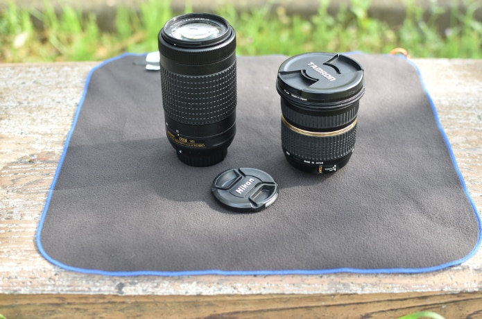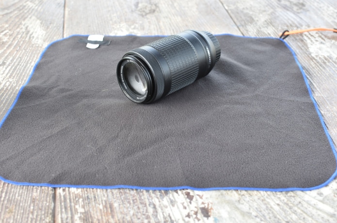 カメラ本体だけでなく、レンズ単体の保護にもぴったり。サイズに余裕があるので、くるっと包むだけで安心です。