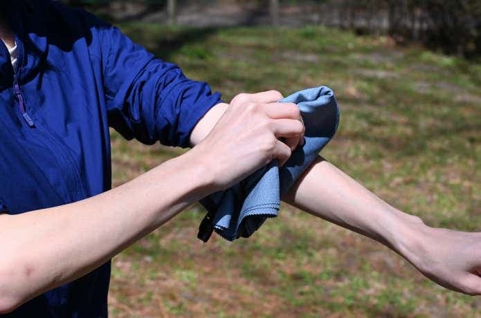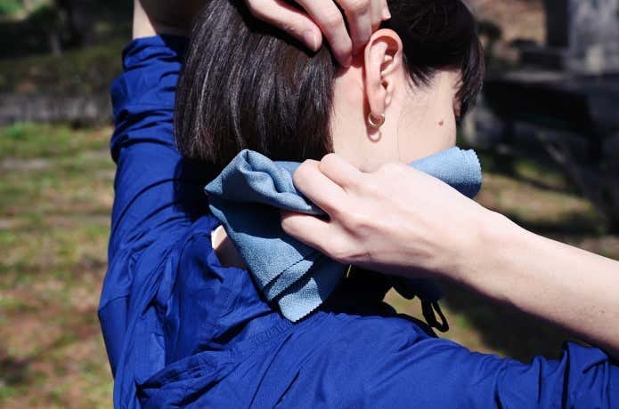 今回は上記の写真のように、タオルがしっかりと濡れるくらい(7〜10プッシュ程度)スプレーを染み込ませてから使用しました。全身や汗をかきやすい部分だけなど、使用する用途によってスプレーの量が増えます。登山用に小さいボトルに詰め替える方は、持ち運ぶ量を考えましょう。