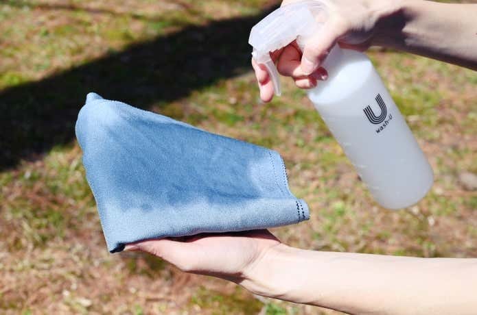タオルが湿るくらいwash-Uを吹きかけ、腕や首などを拭いてみると……