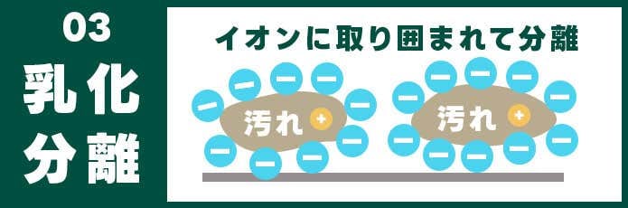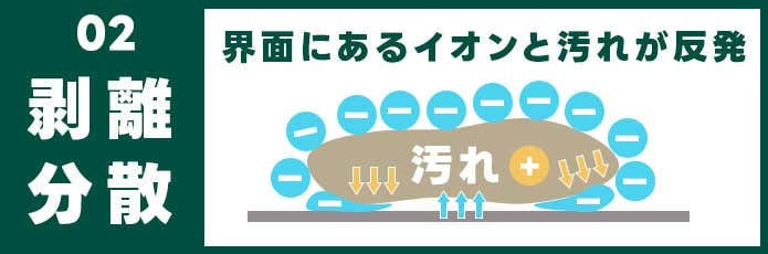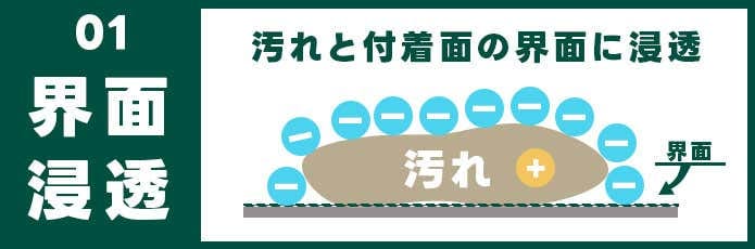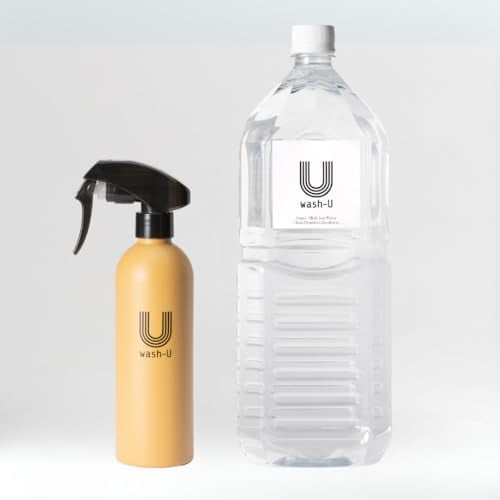 wash-Uは細かな水分子でできた、スーパーアルカリイオン水。高い浸透性によって、汚れと付着面の間に浸透し、汚れを浮き上がらせることが特徴です。