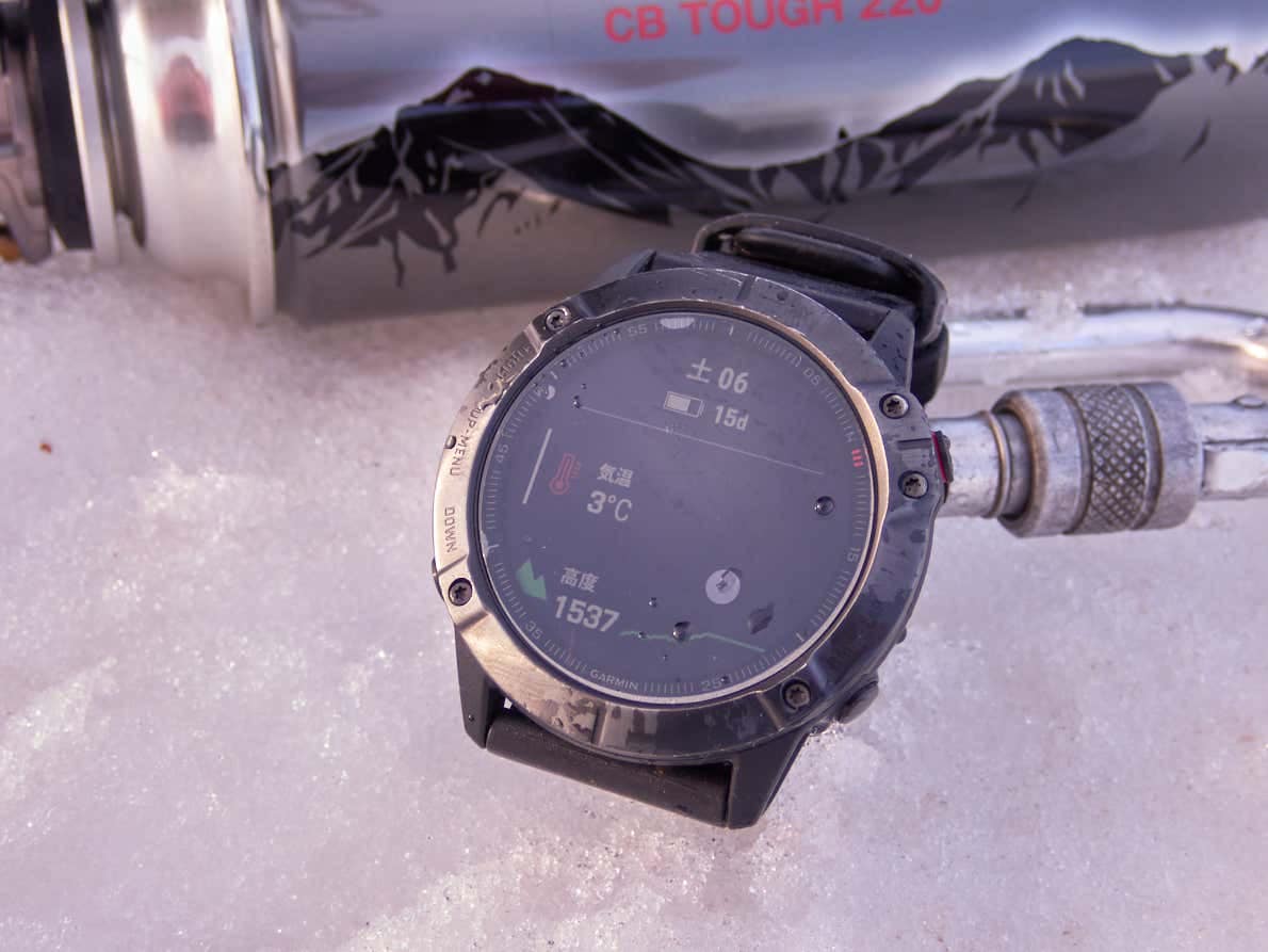 テストした山の標高は1,537m。残雪期ということもあり夕方でも氷点下にならず、気温は雪山にしては暖かい3℃でした。この条件下で、トライトレイルと満タン(新品)のCBタフを使い、とりあえずお茶を沸かしてみることにします。