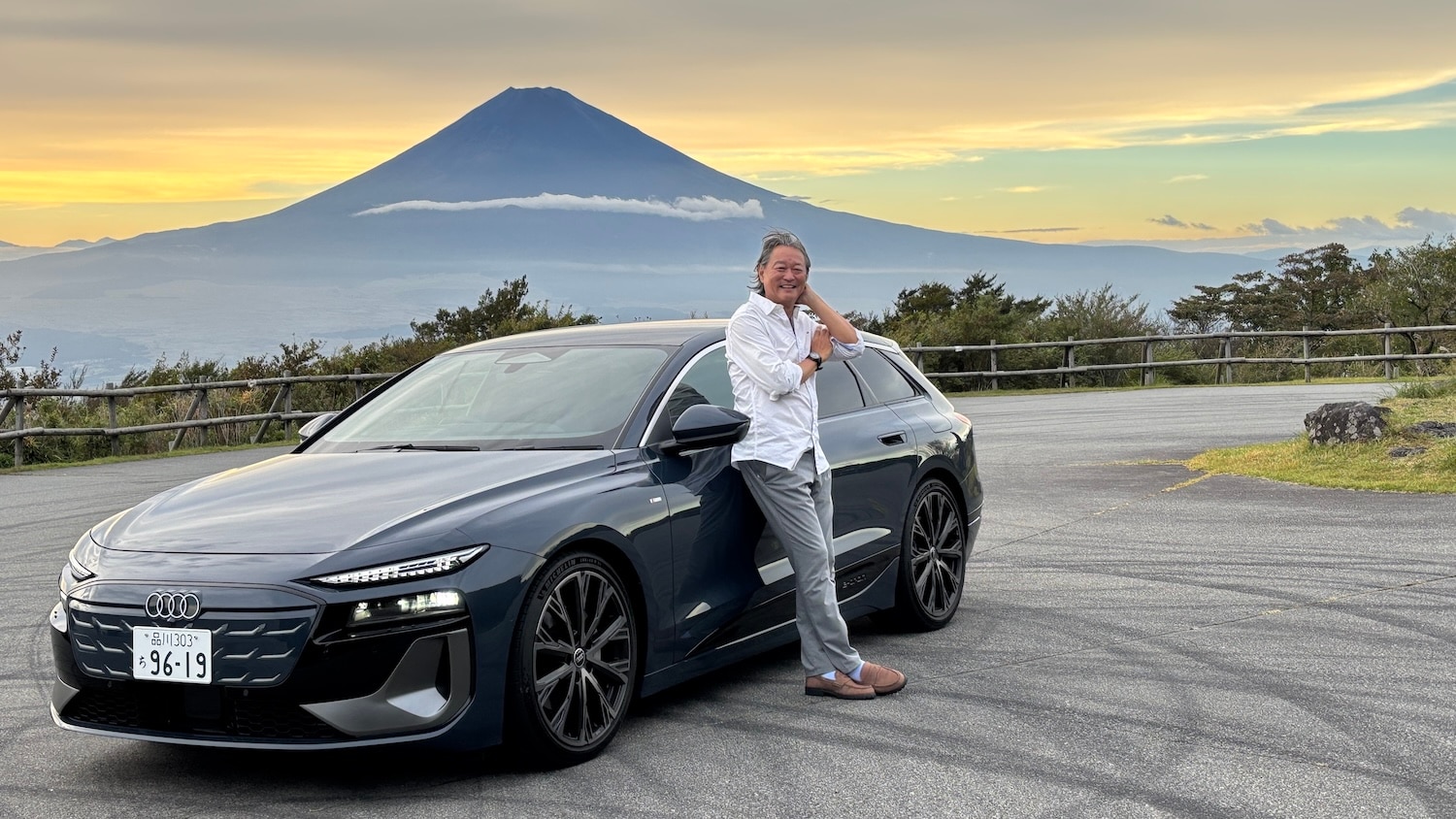FMヨコハマのDJ&モータージャーナリストの高橋アキラとCARIADとAndroid を搭載するAudi A6 e-tron Avant Performance。いずれCARIADに統合されるはずだ