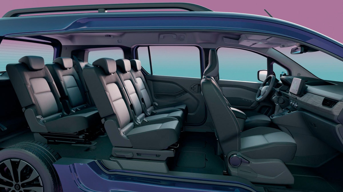 この特別仕様車は、カングーのホイールベースと全長を延長して拡大した室内空間に、前後席スライド、折り畳み(2/3列目)機構、跳ね上げ(2/3列目)機構、取り外し(2/3列目)ができるカングーの7人乗りモデルだ。