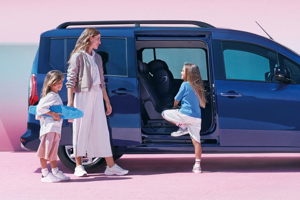 ラゲッジ容量は7人乗車時で500L、3列目シートを取り外すと1340L、2/3列目を取り外すと3050Lとなる。また、カングーのアイコンにもなっている両開きタイプのダブルバックドアは、グランカングーにも装備されており、ドアは約90度の位置でロックがかかり、ロックを外すと約180度まで開くため、大きな荷物の積み下ろしも楽に行なえるようになっている。