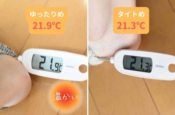検証結果:ゆったりめ靴下の方が足が温まりやすい!
