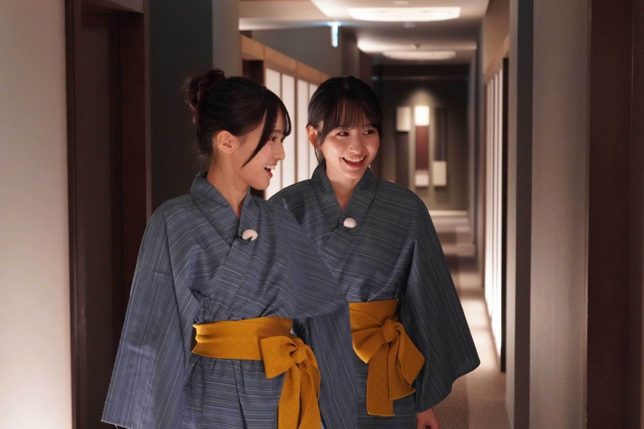 6期生・瀬戸口が案内役となり先輩の5期生・一ノ瀬と鹿児島を旅する今回。後編では1日目の夜、温泉浴衣に着替えて、鹿児島名物の黒豚しゃぶしゃぶを堪能することに。テーブルに鍋が来る前から、2人は「うれしい!」「楽しみ!」とハイテンション。一ノ瀬からは「いえ~い! 鯛、食べた~い!」とダジャレが飛び出し、さらに「温泉に浸かったときの『あ~!』って感じ。沁みる。こういう優しい味を作り出せる人になりたい」と独特な感性で前菜の感想を語る。