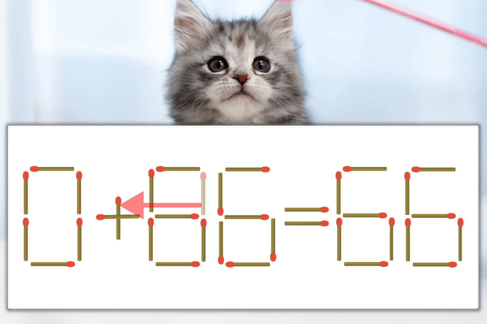 「8」を別の数字に変化させると答えが導き出せます。「8」のマッチ棒を1本移動して、「-」を「+」にしてみましょう。すると、「0+66=66」が成立します。
