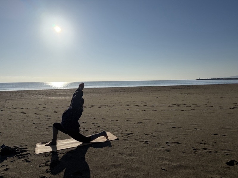 今回は浜辺でヨガを体験した。講師はハッピーヨガ ユイ先生。普段は高知県四万十市でヨガ教室を開いている。さっそく砂浜にヨガマットを敷いて寝転んでみる。広い砂浜で波の音に合わせてゆっくり深呼吸をすると、日常生活では味わえない解放感を得られた。頭も身体もリセットできる時間となった。