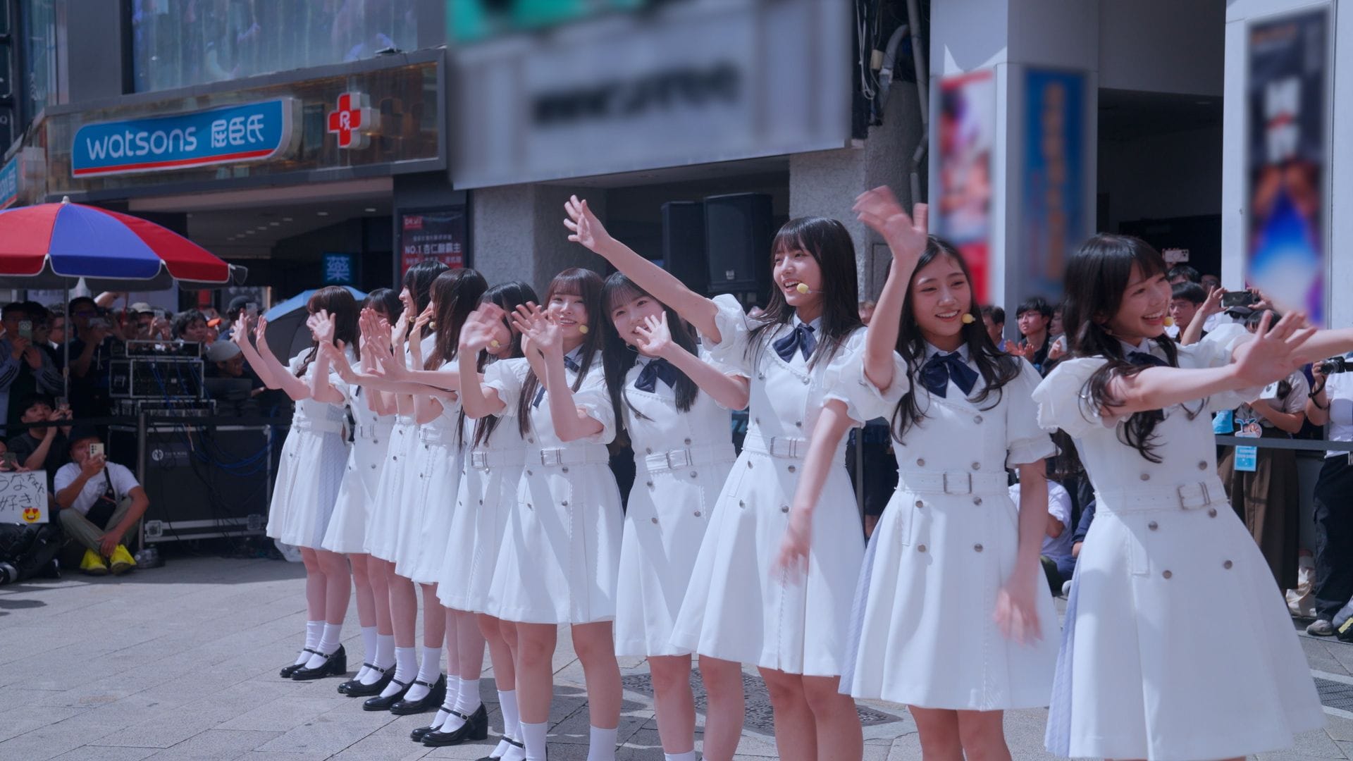 6期生は2曲披露する。1曲目は『タイムリミット片想い』。会場の奥行きを活かしたパフォーマンスを披露するメンバー。続いて瀬戸口心月が中国語で挨拶する。瀬戸口も「聞いてください」と中国語で言った後、言葉に詰まってしまう。すると会場のあちこちから声援が聞こえ、観客が中国語での挨拶をフォローしてくれた。観客に助けられ、「次の曲にいきます!」と中国語で話す瀬戸口。青空の下、2曲目の『なぜ 僕たちは走るのか?』を披露した。瀬戸口が中国語で挨拶し、ライブを無事に終えることができた。
