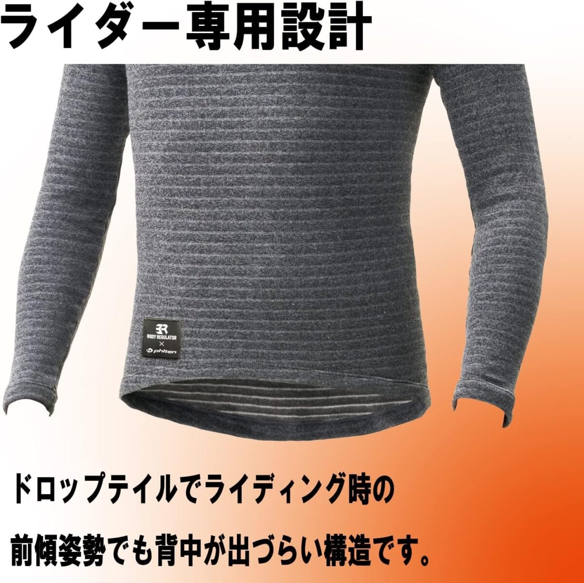 ライダー向けに設計された高機能インナーで、アクリル・ナイロン・ポリエステルなど7種の素材を組み合わせ、保温性・伸縮性・快適性を高めている。前傾姿勢を取りやすい特殊パターンと、背面がめくれにくいドロップテールを採用しているため、スポーツモデルユーザーにありがたい。抗菌性原糸により匂いの発生を抑え、制電糸で静電気の不快感も軽減する。