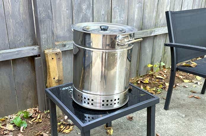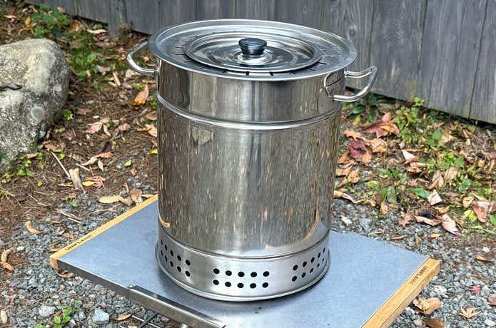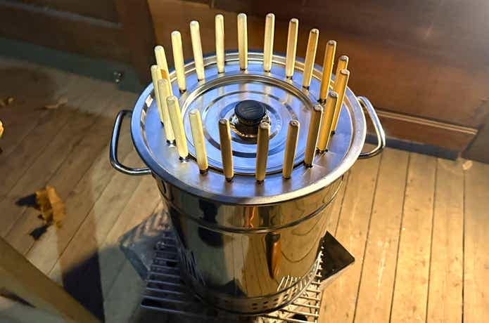 串ごとスタンドセットしたら、ストーブカバーでフタを。ここまでの過程は想像以上に簡単。