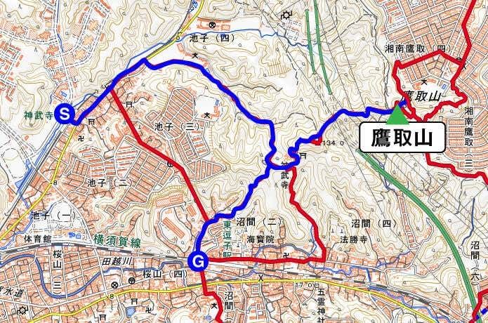 ルート概要 神武寺駅(30分)→ 神武寺(20分)→ 鷹取山(15分)→ 神武寺(25分)→ 東逗子駅