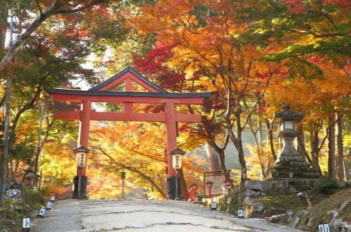 平安京遷都の際には日吉大社が鬼門の方角にあり、京の都の表鬼門(北東)を守ってきたことから、鬼門除けや災難除けとして広く崇敬されるようになりました。日吉大社には3000本ものもみじがあり、関西でも有名な紅葉の名所とも知られており、毎年11月中旬から12月上旬には多くの観光客でにぎわいます。