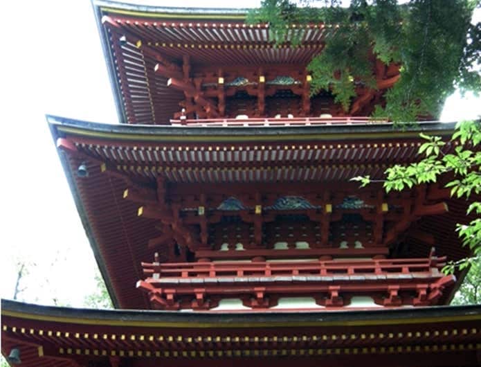 江戸時代には歴代将軍によって庇護され、1751年(寬延4年)には三重塔が建立されました。高さ19メートルで、初重・二重は本繁垂木、三重は扇垂木の江戸時代中期の代表的な三重の塔です。