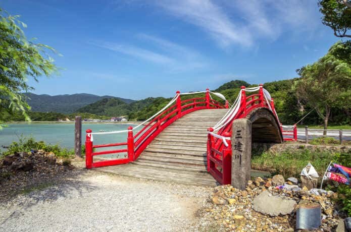 恐山にある宇曽利山湖から流れる正津川は、俗世と霊界を隔てる三途の川と称されています。流れが速く、川にかかる太鼓橋は罪人には針山に見えて渡れず、善人のみが渡ることができるといわれています。