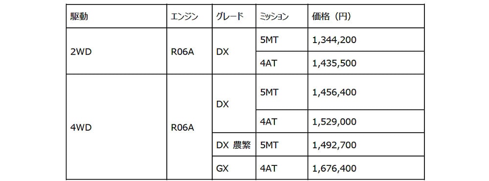 なお「クリッパートラック」はスズキ「キャリイ トラック」のOEMモデルである。
