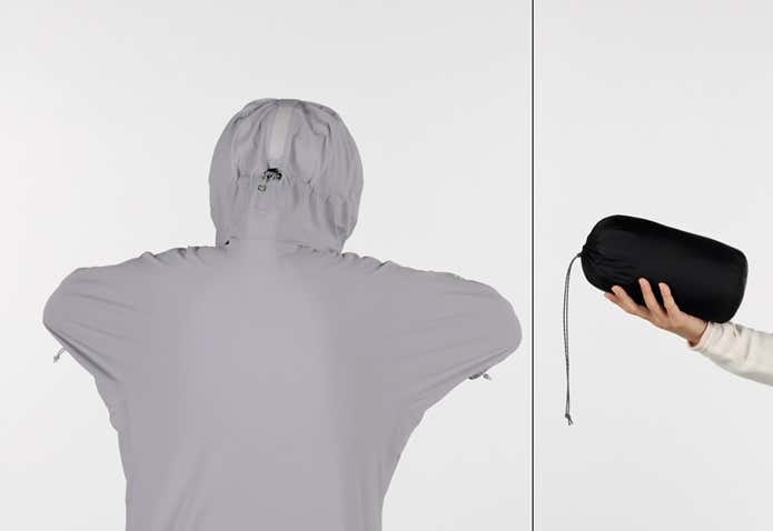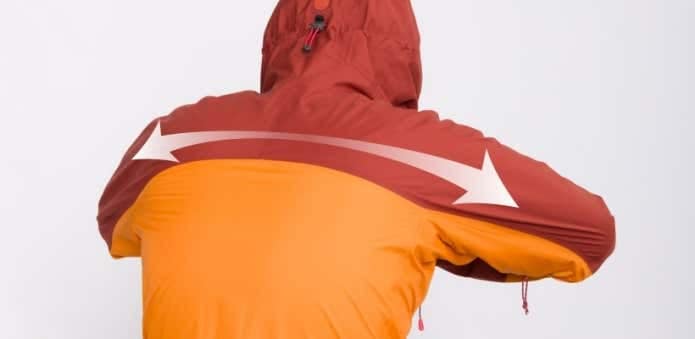 背中から腕にかけてのストレッチ性も高く、優れた運動性を備えています。また軽量コンパクトなので、ザックでの携行時も邪魔になりません。