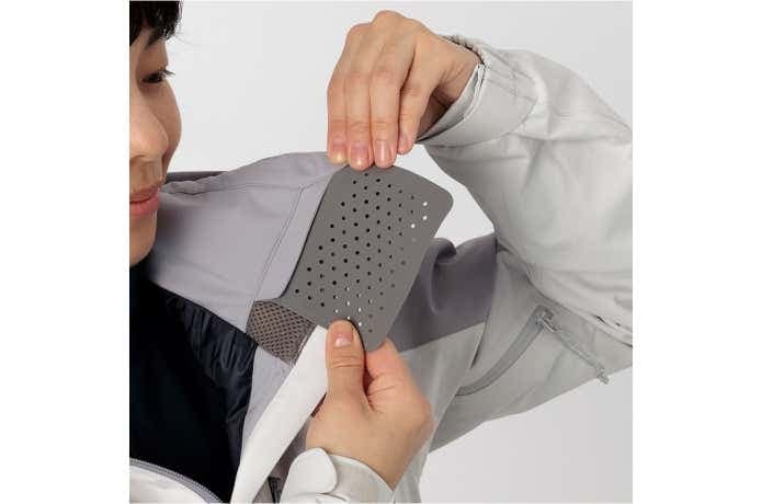 2種類の生地を組み合わせ、しなやかさと軽量性を追求。着心地が良く、背中のストレッチ性も良好で、大きく腕を動かしても突っ張り感が少ない作りになっています。