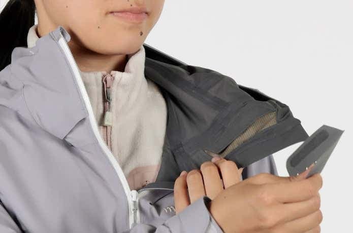 女性が雪山行動中、ジャケットの襟元に付着しがちな口紅やファンデーションに配慮。女性用モデルのジャケットには、外して洗濯できる口元のパーツを配置しています。