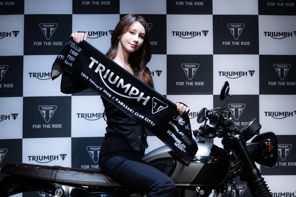 川崎のCLUB CITTA’で、トライアンフの「TRIUMPH Brand Night 2026」が開催された。 会場には2026年モデルの新型モダンクラシックシリーズが勢揃いし、日本初公開のアッ…