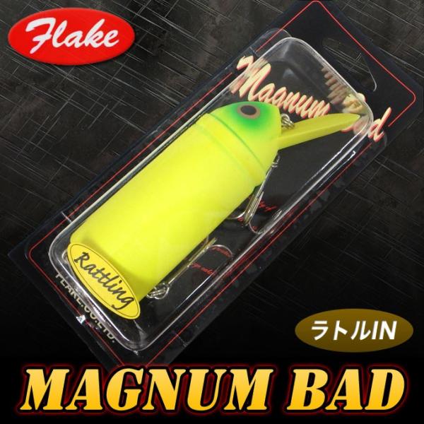 マグナムバドはビッグサイズの水面系ルアー。浮力の強いボディに、潜行する長いリップ。後ろには“カコン、カコン”と大きな音を立てるための金属ブレードが付いた、超アピール系のトップウォーターです。