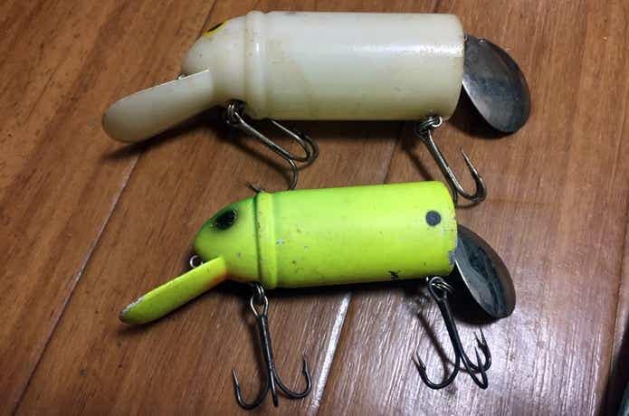 ☝こちらはへドンの名作ビッグバド(BIG BUD)。ファニーなルックスとは裏腹に、大会のウイニングルアーにもなった説明不要の伝説的ルアーです。