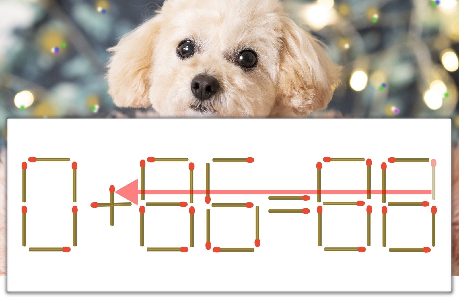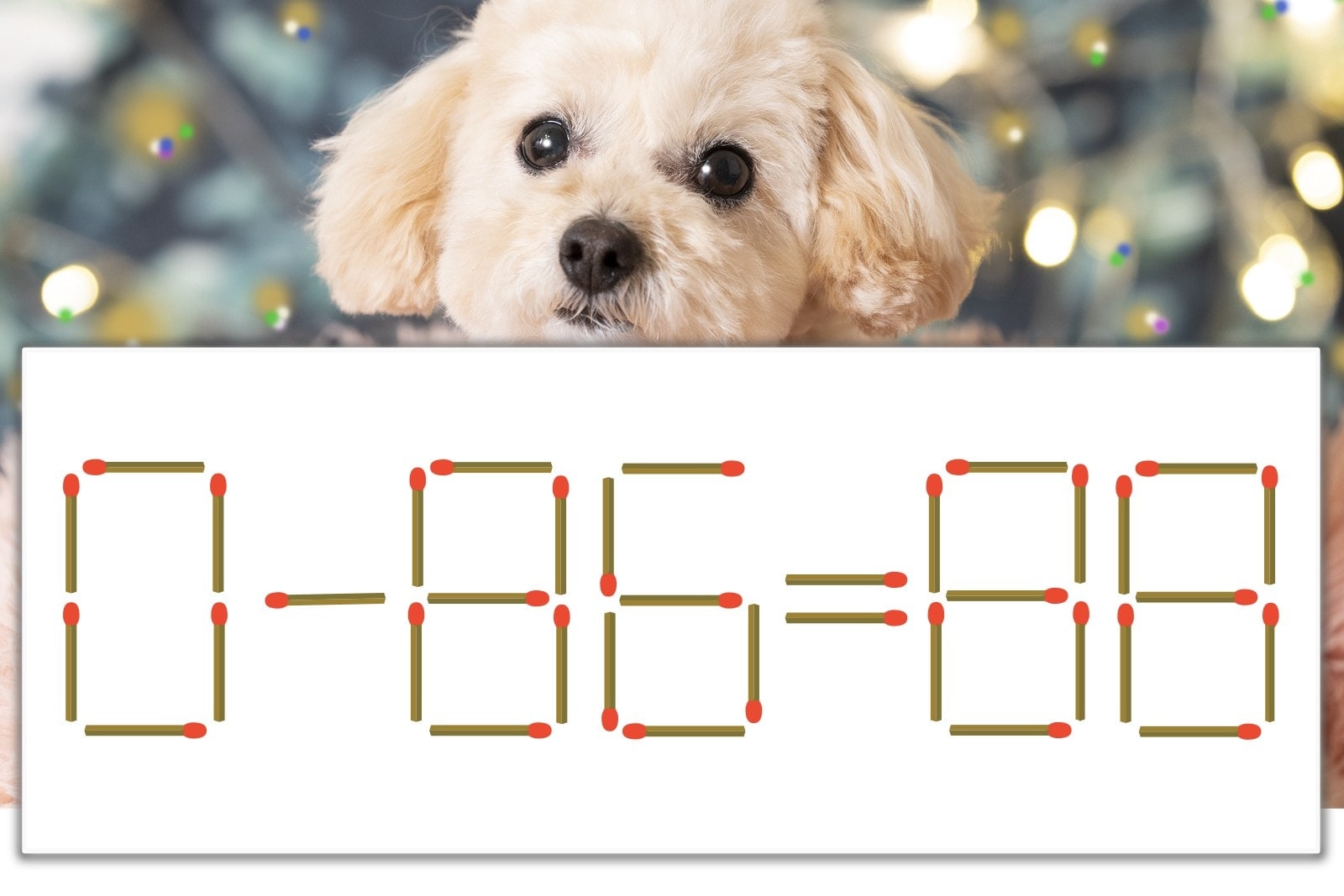 「8」を別の数字に変化させると答えが導き出せます。一の位の「8」のマッチ棒を1本移動して、「-」を「+」にしてみましょう。すると、「0+86=86」が成立します。