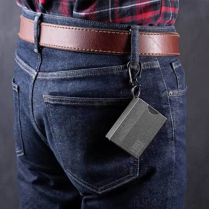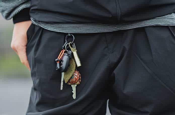 「スリーブケース」にはカラビナ付きだから、ベルトループやサコッシュに外付けするも良し。