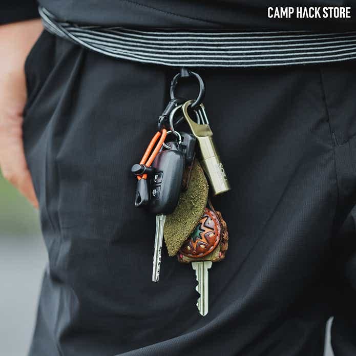 吹き消したりキャップを閉めなければ点火し続け、ロウソクみたいな使い方も可能。また、キャップ部分がカラビナ一体型なので、バックパックやキーホルダーへの装着もかんたんです。