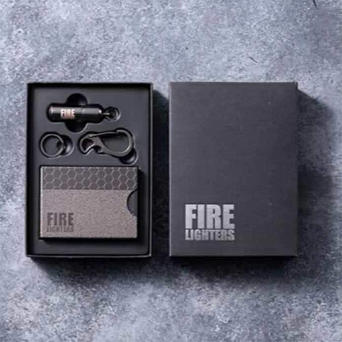 ファイヤーライターズが3本入る「防水ケース」に、カット用スリット付きの「スリーブケース」、超ミニサイズの「防水オイルライター」の3点がセットになっているんです。