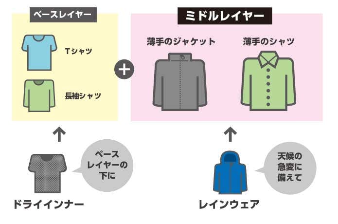 登山の服装で基本とされているのが、「レイヤリング」と呼ばれる重ね着のテクニック。