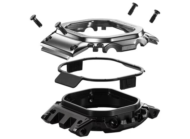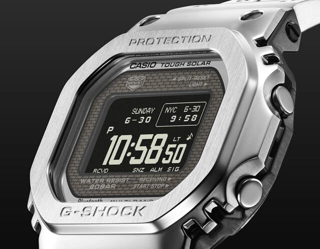 超定番の5000シリーズのデザインで外装はフルメタル仕様。さらに、デジタル表示部にはMIP液晶を採用した最新モデル。MIP液晶は日差しの強い屋外でも視認性が良く、高精細表示でウオッチフェースをさまざまなフォントに切り替え可能。ベゼルとセンターケースを上下で連結した独自構造で、強靱な耐衝撃性能も踏襲!