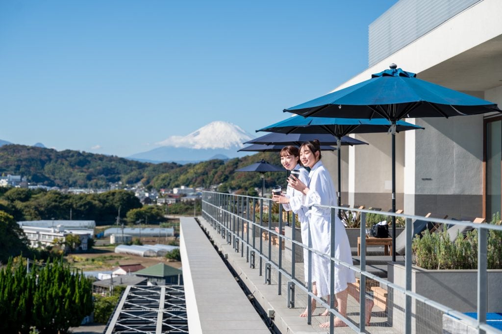 冬の澄んだ空気と相模湾の水平線、富士山のシルエットを背景に、温かな水面から立ち上る湯気が重なる“冬の絶景スパ”を楽しめる。外気が5度前後まで下がる日でも、景色を楽しむ余裕がありそうだ。