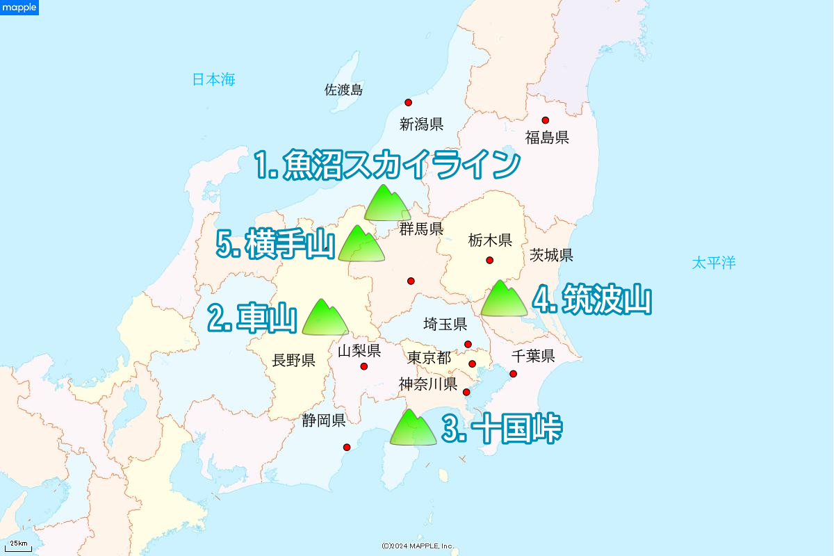 今回は、そんな「山の風景」を見られるおすすめスポットを、『ツーリングマップル関東甲信越』掲載エリアから、5箇所紹介します。早速見ていきましょう!