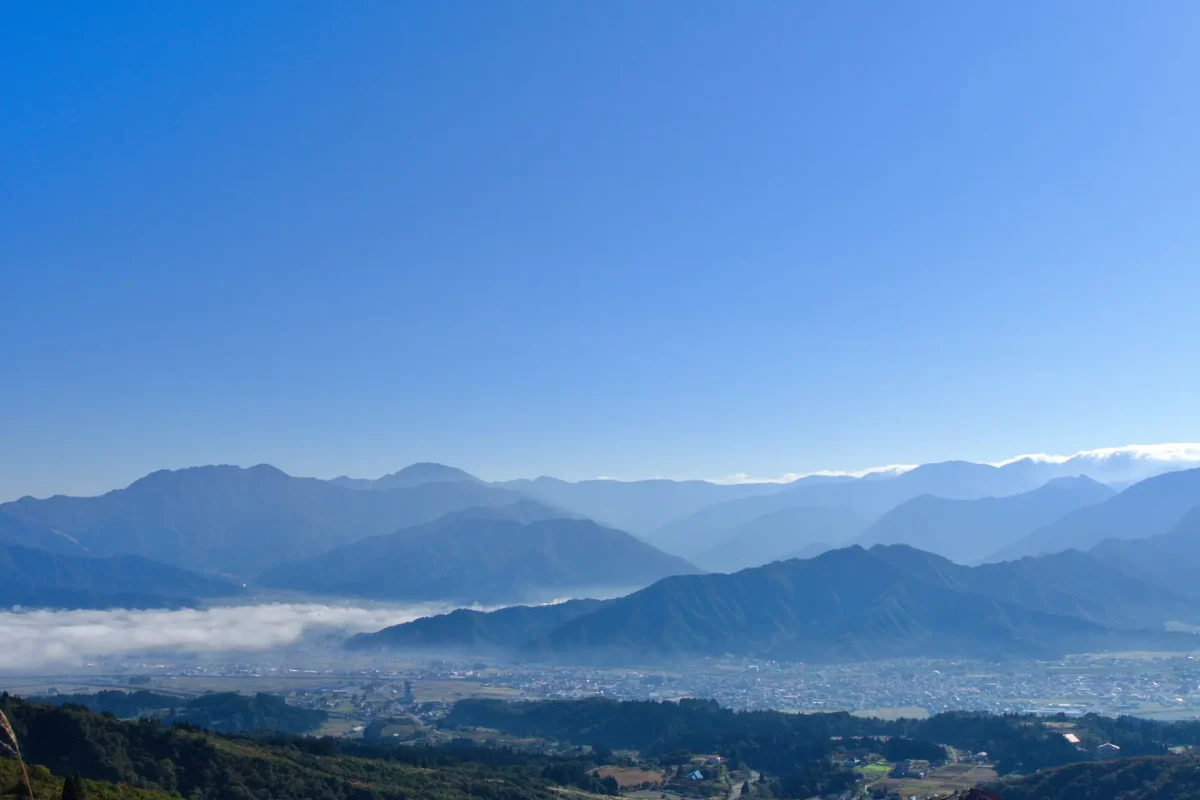 南魚沼市の「八荷峠」から、十日町市の「十二峠」まで、標高約1000mの稜線上を走る道です。沿道には、「魚沼展望台」、「十日町展望台」、「八箇峠見晴台」とビュースポットが点在していて、新潟、福島、群馬の県境にそびえる、「八海山」や「巻機山」、「谷川岳」といった、名だたる名山の眺めが楽しめます。これから秋が深まるにつれて、魚沼盆地の雲海のシーズンもスタートします。とくに、「護国観音」の観音様の裏手からの眺めが見事です。