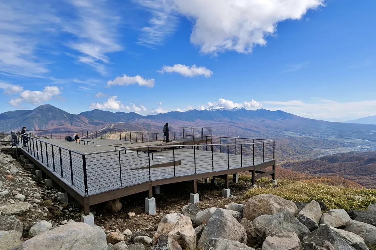 ビーナスライン沿いの霧ヶ峰高原にそびえる車山(標高1952m)は、山頂まで二つのリフトを乗り継いで、ラクラク登山ができます。山頂は開けているので、360度の絶景が広がり、蓼科山や八ヶ岳、南アルプス、北アルプスの眺めを存分に楽しめます。南側には「車山展望テラス」があり、眼下にはビーナスラインも見えます。