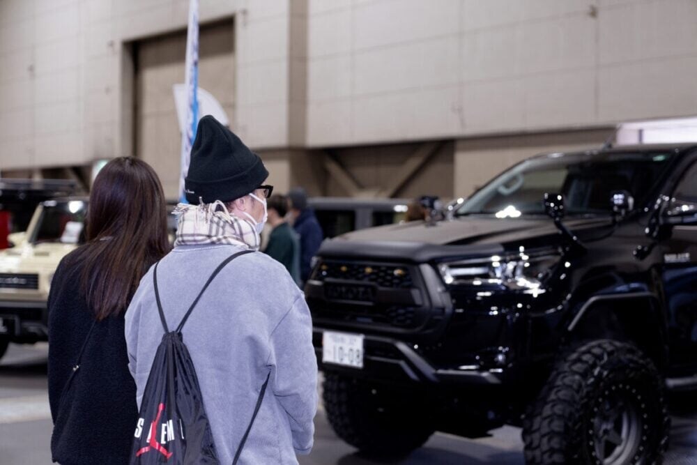 会場に隣接する屋外スペースには、ユーザー車両が100台以上(先着順)並ぶ野外展示場が登場。プロが仕上げたデモカーもいいですが、リアルユーザーの個性的な4WD、SUVは見ているだけでワクワクします。