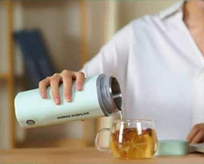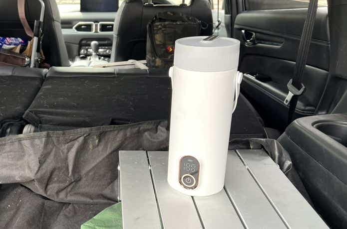 まずは、ボタンを押して5分待つだけ! 350mlのお湯ができるYUNFANGの「ポータブル電気ケトル」です。