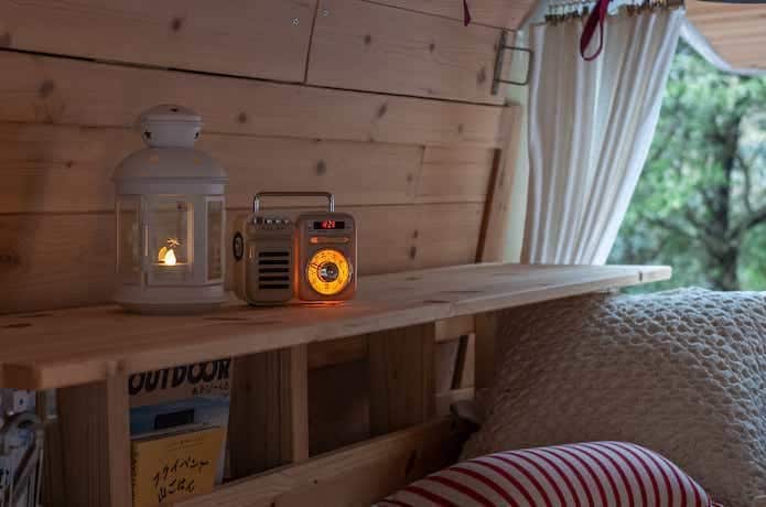 DIYしたバンで、ご夫婦で車中泊旅を楽しむのが趣味というライターのharu.さん。車中泊の際、車内で音楽を聴いて過ごすことが多いそうですが、そんな時間のお供が「マルチレトロラジオ」なのだそう。