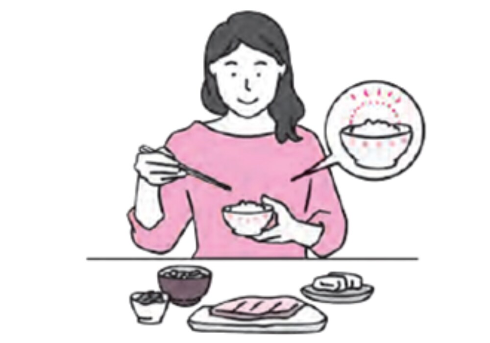 糖質をいつもより一口分減らすだけでやせ体質になります。糖質は脂肪の材料になるだけでなく、食べ過ぎると血糖値を上げ、脂肪をためやすい状態にしてしまいます。いつもの食事から糖質を一口分減らすだけで、脂肪をためにくい体に変えていくことができます。