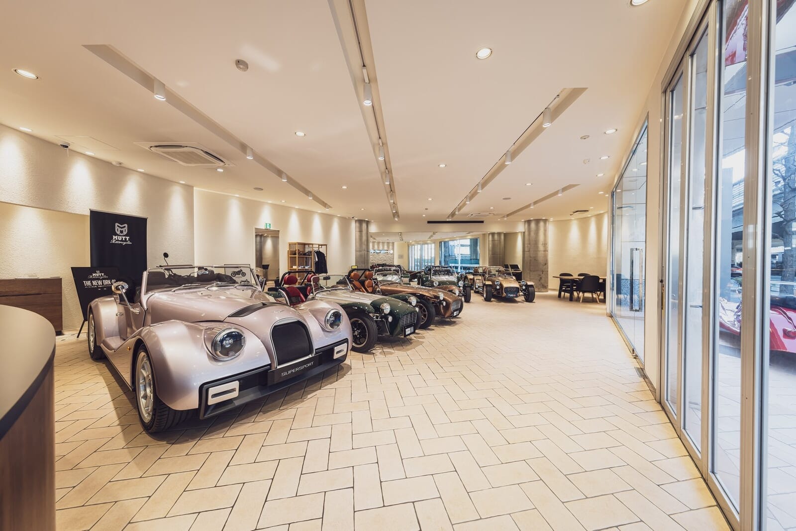 展示車両は最大6台。決して巨大なスペースではないが、この2ブランドに限って言えば、6台もあれば十分すぎるほどの「濃度の高い」空間になることは間違いない。