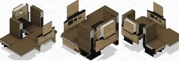セカンド・サードのシングルシートは、乗車時は前向き、就寝時はフルフラットへと自在に展開可能。シーンに応じて使い分けられる柔軟なシートアレンジに加え、DC12Vクーラーも搭載し、車内での快適性もしっかり確保されています。