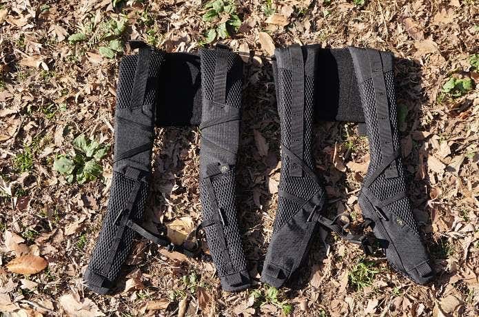 画像左が標準装備されている“SODA LITE”という軽量・1cm厚・細めのショルダーハーネス。右は、交換して重い荷物に対応する軽量・2cm厚・幅広めの“SODA TUFF”です。