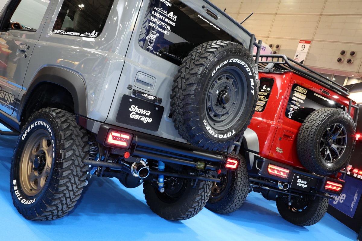 依然として高い人気を維持しているスズキ・ジムニーシリーズ。そのカスタムにほぼ特化した活動で注目を集めるのが「ショウワガレージ」だ。東京オートサロン2026でもその勢いはとどまることを知らず、広めの区画にデモカーとラリーマシンを2台ずつ並べ、アルミホイールやライトニングを中心としたオリジナルパーツもずらりと展示。個性を主張して多くの来場者を集めた!