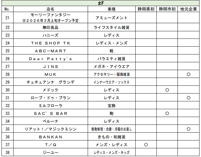 専門店ゾーンには、静岡市内初出店6店舗(うち、静岡県内初出店3店舗)を含む約40店舗がオープンします。フードコートには、焼肉チェーン「牛角」がプロデュースする「牛角 焼肉食堂」が静岡市内初出店するほか、ラーメンの「ちゃーしゅうや武蔵」など家族で楽しめるラインナップが揃います。東海エリア初出店の本格炭火焼鳥店「銀座惣菜店」や静岡おでんなどを提供する「天神屋」、静岡県内限定ショップで同ブランド初の店内イートインスペースを設ける「Cookie Pige(クッキーピゲ)」も注目です。