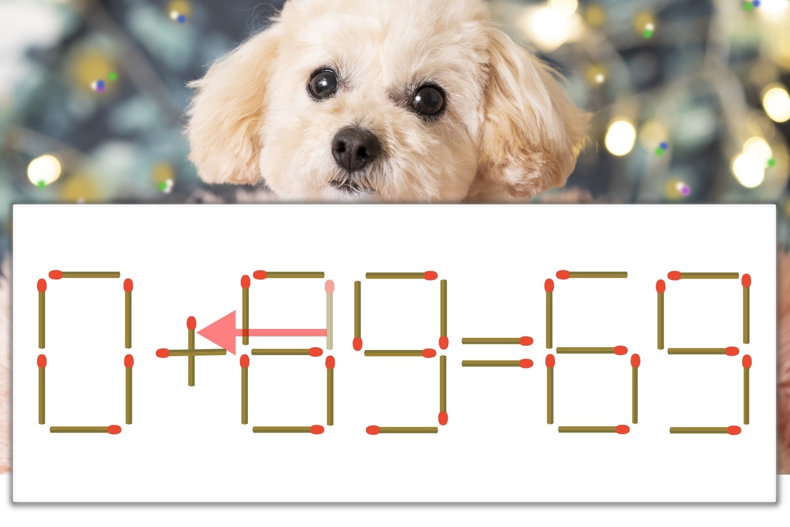「8」を別の数字に変化させると答えが導き出せます。十の位の「8」のマッチ棒を1本移動して、「-」を「+」にしてみましょう。すると、「0+69=69」が成立します。