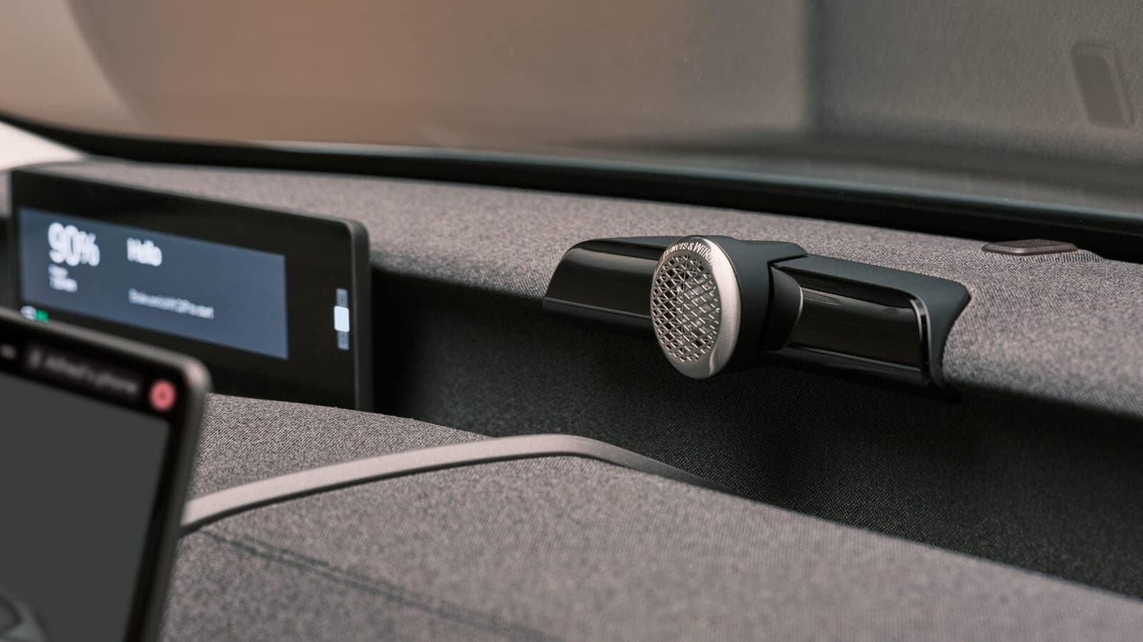 パノラマルーフ、たくさんの「自然で高級な素材」の内装、豊富な収納、分割可倒式リアシート、そしてメインの4席のヘッドレストにスピーカーを備えたB&Wステレオがある。