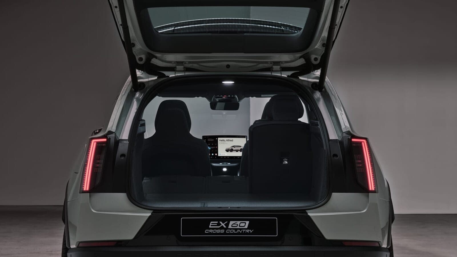 通常のEX60には3つのバッテリーサイズに対応する3つのバージョンが用意され、「EX60 クロスカントリー(CC)」(下の写真)には1つのトリムのみが用意される。EX60には、シングルモーター・後輪駆動で369bhp(374PS)の「P6」(83kWhバッテリー)、ツインモーター・AWDで503bhp(510PS)の「P10」(95kWhバッテリー)、そしてビッグボーイの「P12」、こちらもツインモーターEVで驚異の671bhp(680PS)(117kWhバッテリー)がある。