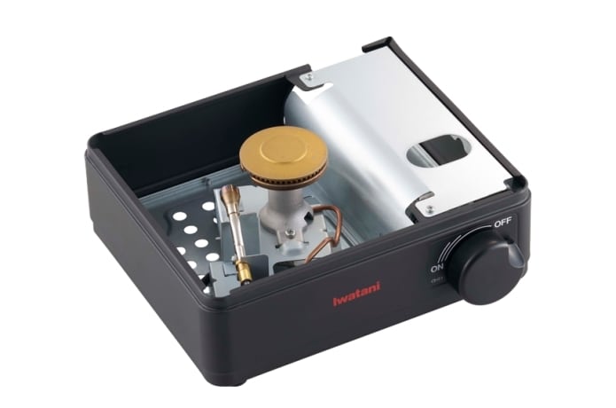 キャンパーにはおなじみのイワタニから今回新たに登場したのが、こんろとストーブの一台二役の「イザまる」。