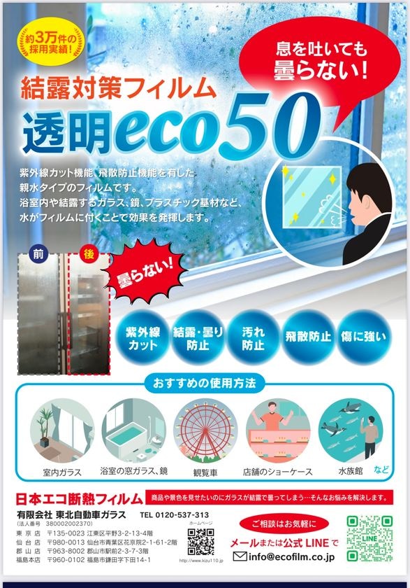 日本エコ断熱フィルムが見た目も効果も抜群な結露防止透明フィルムをAmazon限定価格で提供開始!